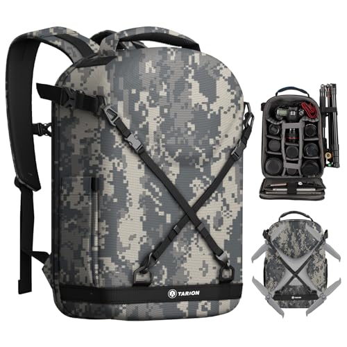 TARION Camera Backpack 3-side Hardshell: Hard Case Protective Photography Backpack DSLR Bag with Waterproof Raincover Laptop/Tripod Compartment Drone Backpack Camo TRH