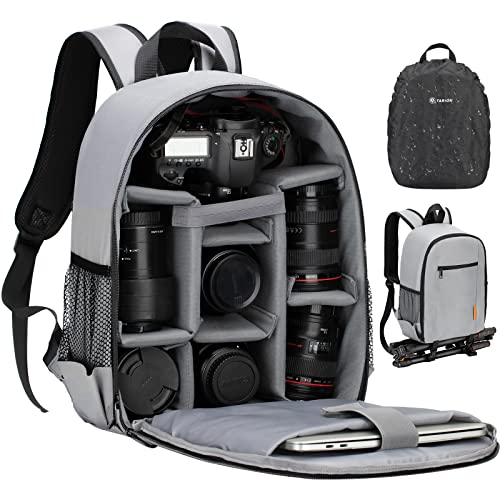 TARION Camera Backpack Bag for Photographers - DSLR Camera Bag with Laptop Compartment Waterproof Raincover Travel for Men Women Photographers Grey TB-M