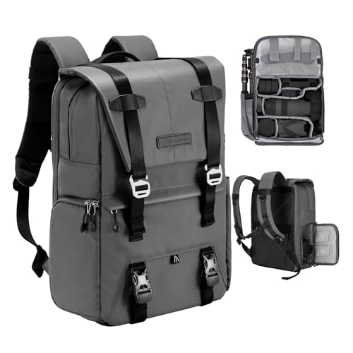 Cuifati Camera Backpack, EVA Windproof & Waterproof Photography Backpack Professional DSLR Camera Case, Travel Camera Bags for Photographers with Raincover & Laptop Compartment (Gray)