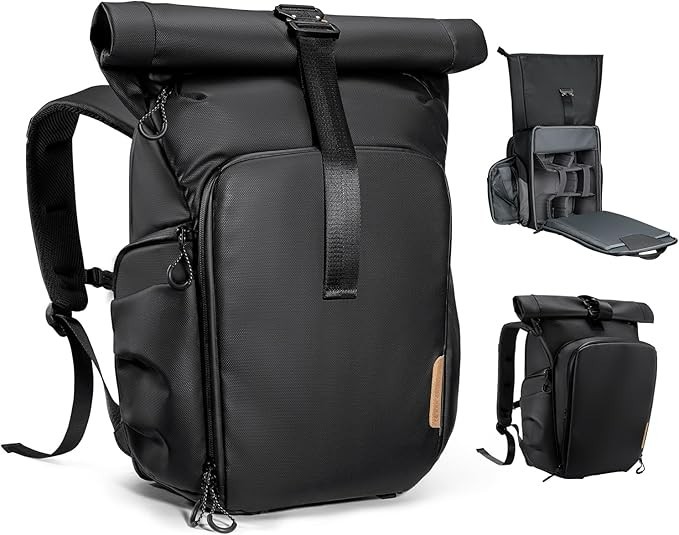 K&F Concept 26.5L Alpha Camera Backpack, Main Compartment 25L + Top Extension 1.5L, 3 Side Open, Large Camera Bag with Rain cover, Holds 2 Camera, 4 Lenses, 16" Laptop for Photographer