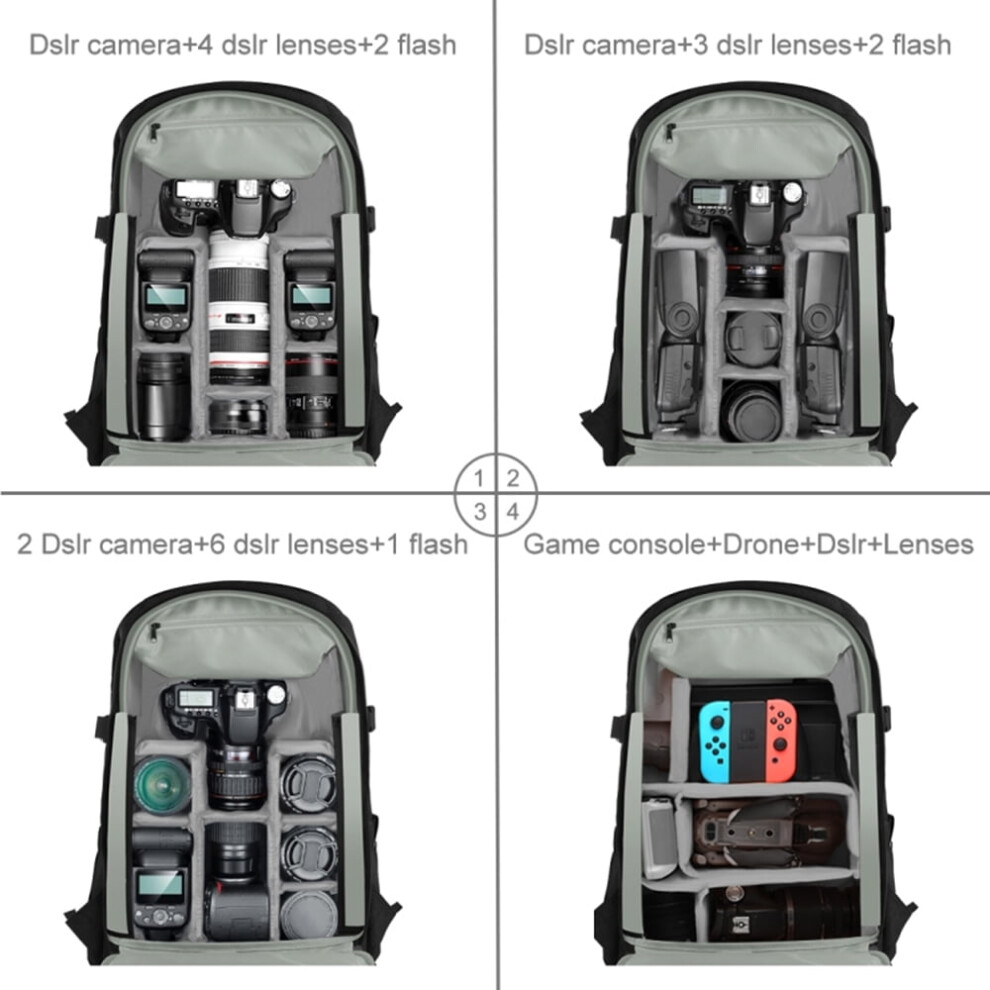 Camera Backpack - Multifunctional Camera Bags, Waterproof Camera Backpack, Adjustable Camera Bag with Compartment, Zipper Organizer Bag for Boys Ado, Gray, Please refer to the description, Please