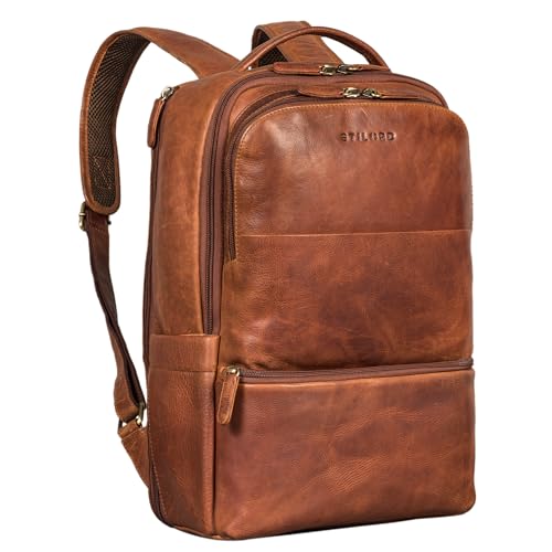 STILORD 'Chicago' Business Backpack Genuine Leather Laptop Backpack in Stylish Vintage Look Leather Backpack Men Ladies Backpack with Laptop Compartment Unisex, Colour:Sonora - Cognac