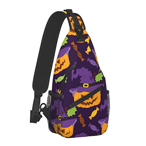 Mens & Womens Shoulder Chest Sling Bags Halloween Decorations Costumes Pumpkin Skulls Backpacks for Travel Outdoors Running, Fashion Casual Crossbody Bags