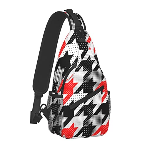 Mens & Womens Shoulder Chest Sling Bags Black Red White Houndstooth in Patchwork Style Backpacks for Travel Outdoors Running, Fashion Casual Crossbody Bags