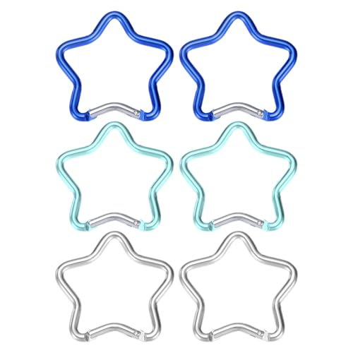 TIXIPEM Star Shaped Snap Clip [6 Pack] - Durable Keychain Clip Spring Snap Hook Use for Backpacks, Outdoor Traveling Walking & Camping Hiking - [Light Blue/Dark Blue/Silver/Aluminum Alloy]