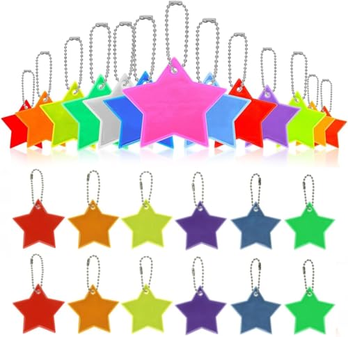 Bbtcxjs 30 PcsReflective Reflectors, Reflective Pendants, Star Safety Reflector Pendants with Chains, High Visibility Reflective Keyrings Keychain for Bags School Backpacks Running Walking Cycling