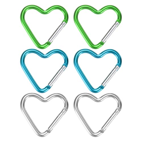 TIXIPEM Heart Shaped Snap Clip [6 Pack] - Durable Keychain Clip Spring Snap Hook Use for Backpacks, Outdoor Traveling Walking & Camping Hiking - [Blue/Green/Silver/Aluminum Alloy]