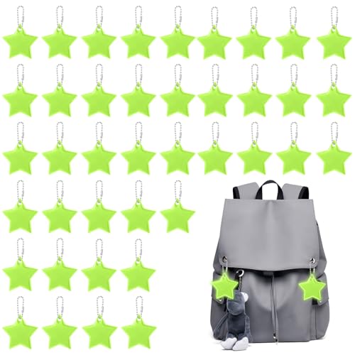 Elegaperma 40 Pcs Star Reflectors,Safety Reflector Pendants with Chains,Star Reflective Tags for Kids,High Visibility Waterproof Reflective Keyrings for School Bags,Backpacks,Walking,Running, Cycling