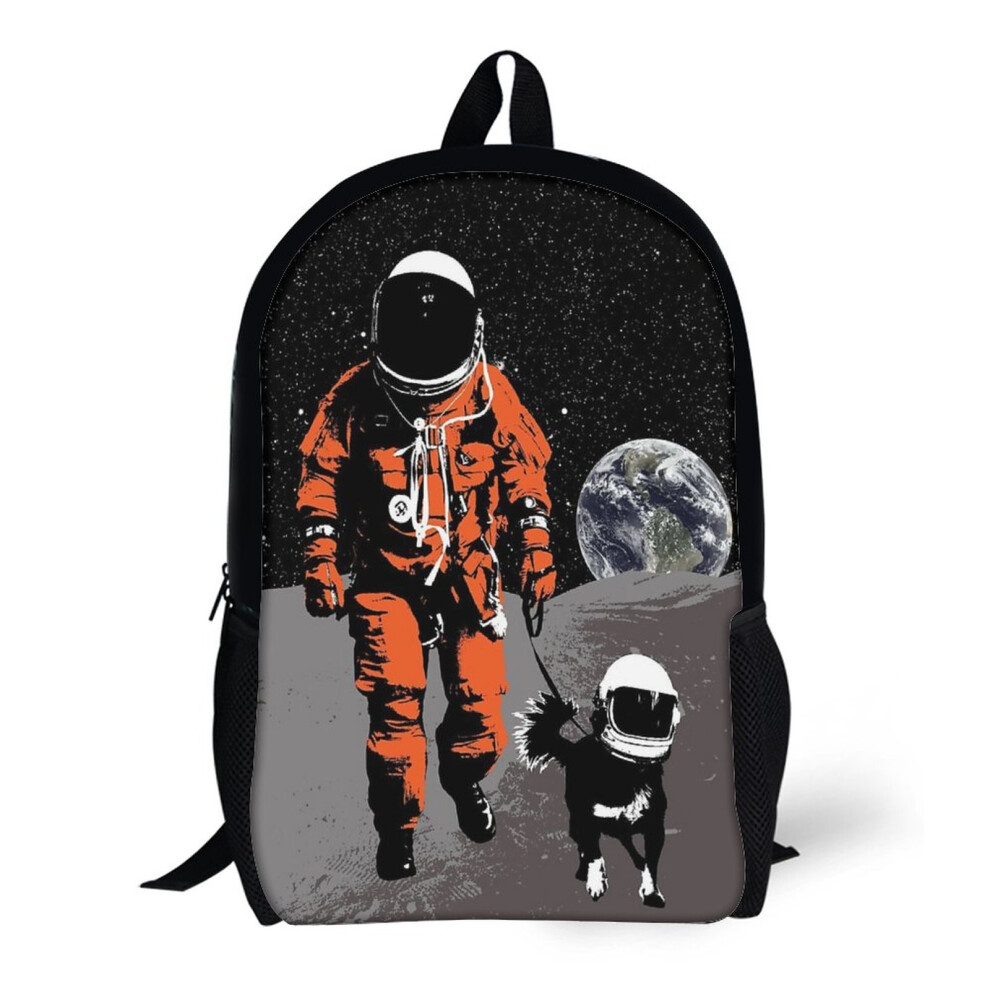 Backpacks Astronaut Walking His Dog on The Moon 17inch School Bag