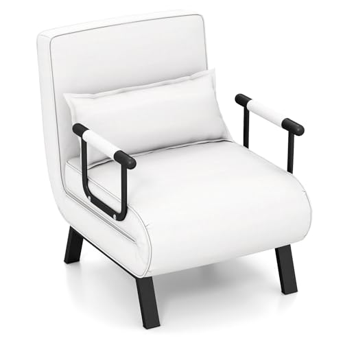 COSTWAY Folding Sofa Bed, 4-in-1 Convertible Single Sofa Chair Bed with 6-Position Adjustable Backrest and Pillow, Padded Seat Lounge Couch Guest Sleeper Recliner Armchair for Living Room (Off-White)