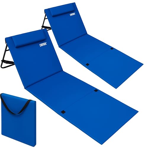 Detex 2x Blue Foldable Beach Mat With Padded Backrest Pillow Storage Compartment Adjustable Sunbathing Mat Camping Recliner Deckchair Towel Tubular Steel Strap
