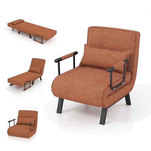 COSTWAY Folding Sofa Bed, 4-in-1 Convertible Single Sofa Chair Bed with 6-Position Adjustable Backrest and Pillow, Padded Seat Lounge Couch Guest Sleeper Recliner Armchair for Living Room (Coffee)