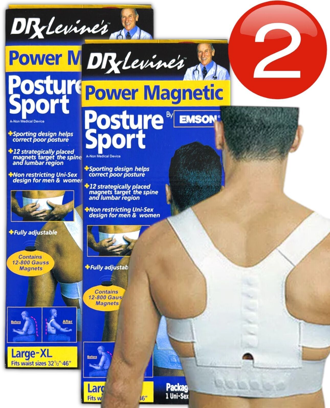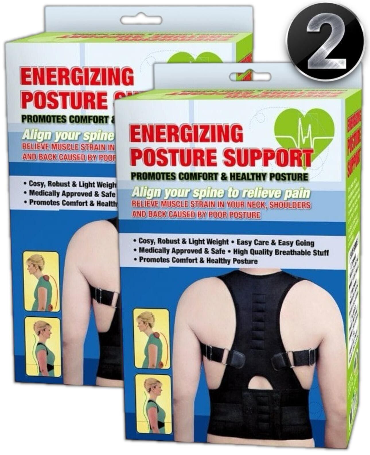 2 x Magnetic Posture Corrector Brace Belt Bad Back Lumbar Problem Proper Support