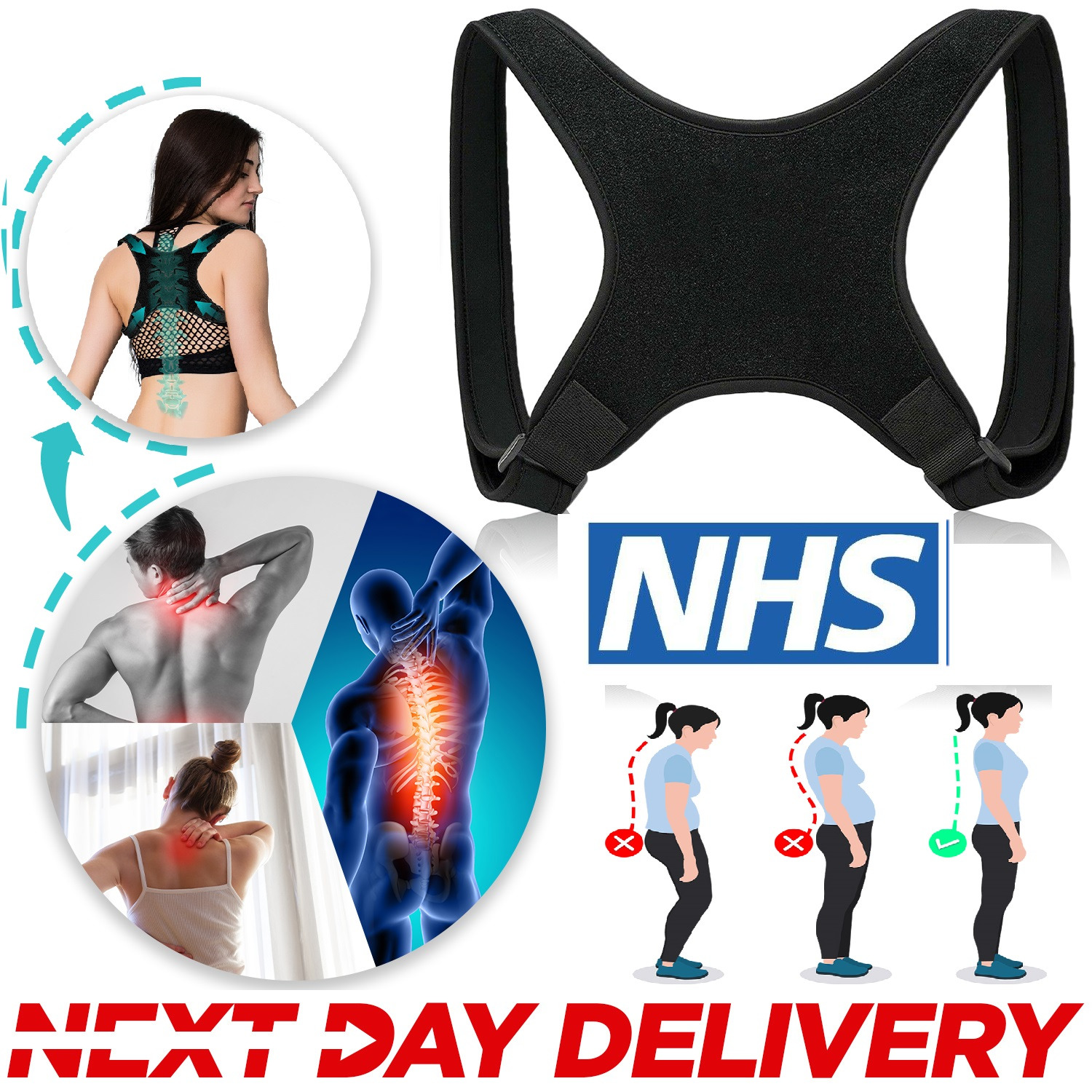 Posture Corrector Shoulder Support Belt Bad Back Brace Lumbar for Men & Women UK