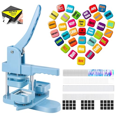 Square Magnet Button Maker Kit Badge Maker Machine 50mm*50mm with 100 Set Square Magnet Button Making Supplies DIY Square Photo Badge Button Press Machine Pin Badge Maker (Blue, Fridge Magnet)