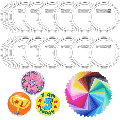 50Pcs Badge Making Kit for Kids, 3.8cm Clear Button Craft Badges Make Your Own Badges Button Badge Acrylic Button Pin Badges for DIY Craft Activities Decoration and Kids Party Bag Fillers