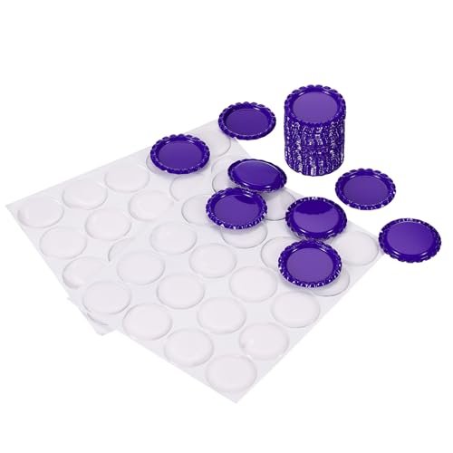 PATIKIL 40 Set Bottle Caps for Crafts, 1 Inch Double Sides Printed Craft Bottle Caps with Clear Resin Epoxy Stickers for DIY Craft Badge Making, Purple