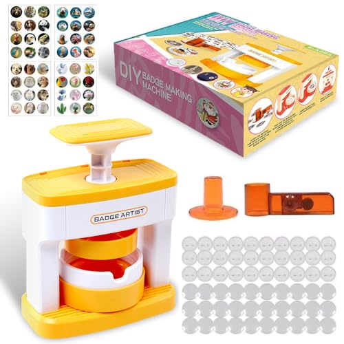 Lotvic Badge Making Kit for Kids, 55mm Badge Making Machine with 48 Pcs Button Parts, Cute Stickers, Circle Cutter, Kids Button Maker Machine, Fun DIY Badge Maker for Kids Birthday Christmas Gifts