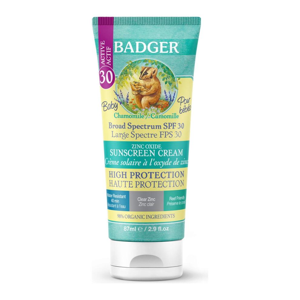 Badger Baby Chamomile Mineral SPF 30 Sunscreen Cream, 87 ml (2.9 fl oz)