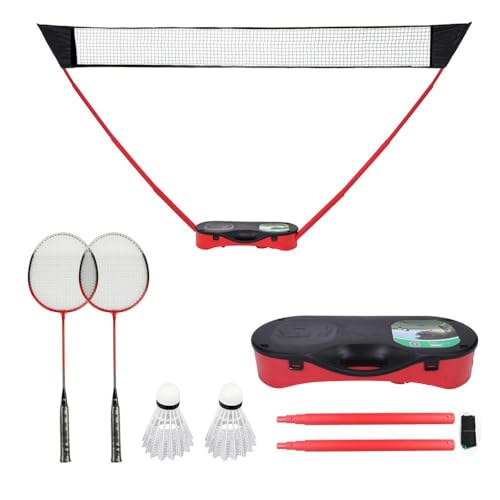 Badminton Rackets Set 2 or 4 Person Badminton Set with Net for Garden Easy Setup Badminton Set for Adult Kids Children Family with 3 shuttercocks (2 rackets, Red)