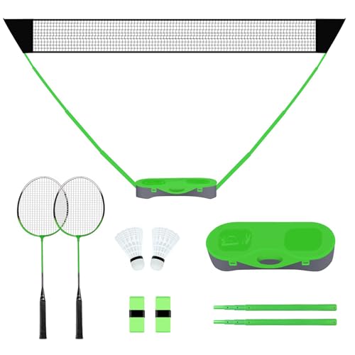 ENOVI EasyGo Badminton Set, with Net, 4 Racket, 4 Birdies, Portable Storage Box, for Backyards, Outdoor Games, Yard Games