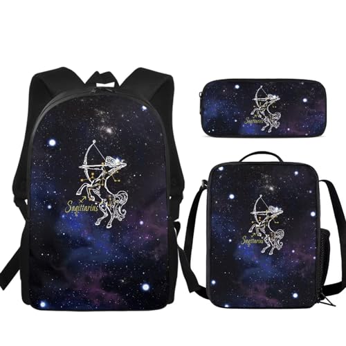 Urndoeng 2025 Twelve Constellations Kids Backpacks Set for Primary Girls Boys 3Pcs School Bag Bookbag and Lunch Bag Pencil Case for Middle Hight School Sagittarius