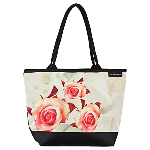 VON LILIENFELD Handbag Flowers Roses Design Shopper Dimensions L 42 x H 30 x D 15 cm Beach Bag Handbag Office, multicoloured, Contemporary