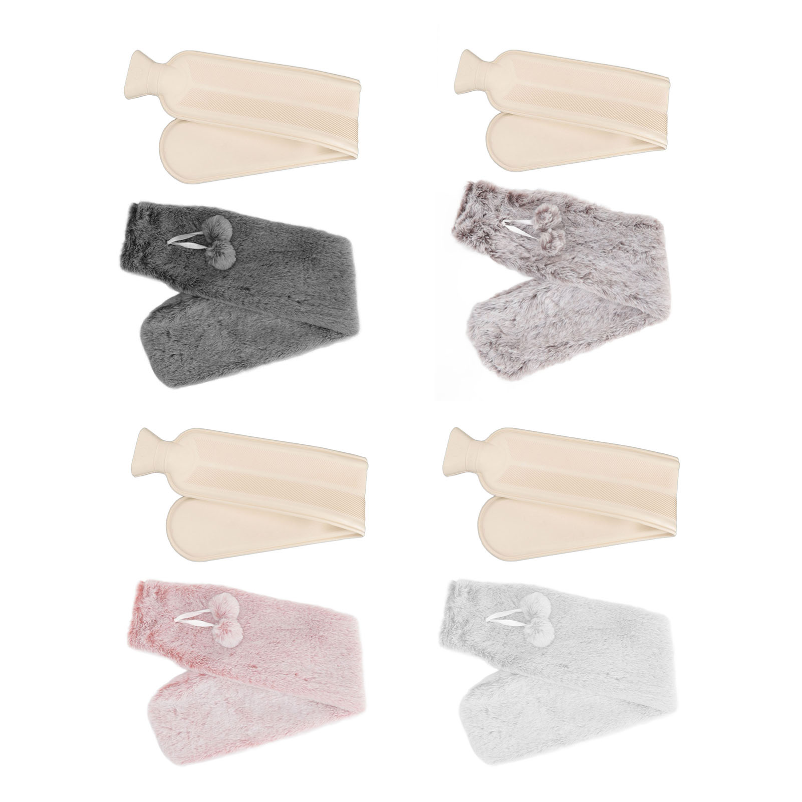 (Gray)Hot Water Bag Hot Water Bottle Rubber Hot Compress Belt Super Soft Warm