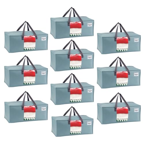 VENO Pack of 10 Extra Large Moving Bags with Strong Handles and Zippers, Foldable Storage Bag, Clothes Storage, Laundry Bags for Moving, Travel, Camping (Light Blue, Pack of 10)