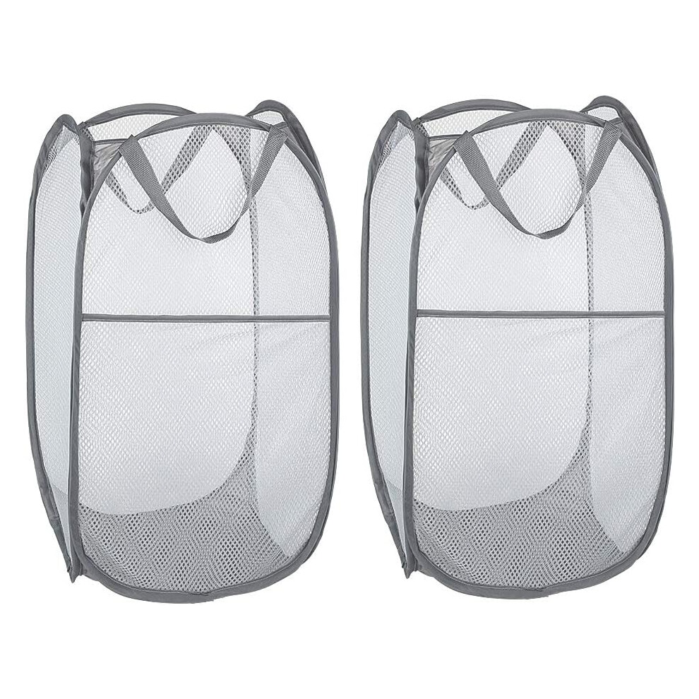 Laundry Basket [Set of 2] with Handle, Grey Collapsible Pop Up Mesh Laundry Baskets Laundry Bag Foldable Laundry Hamper