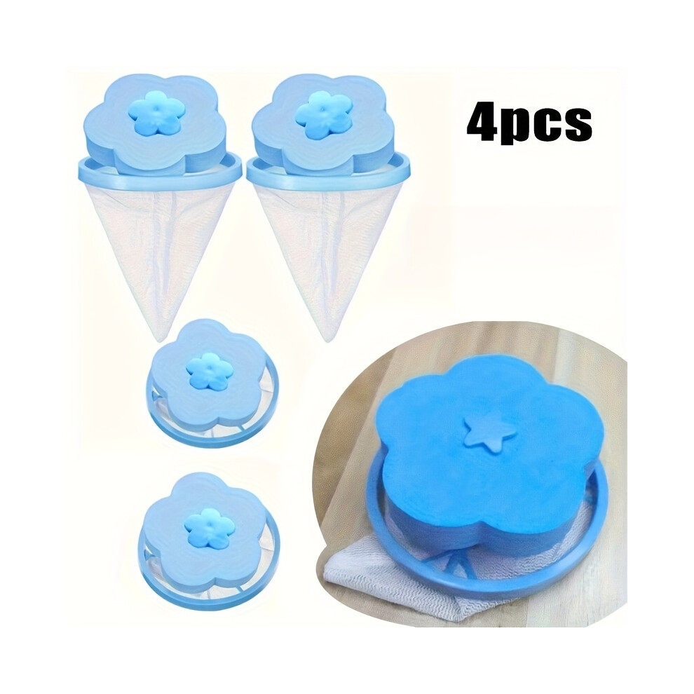 (4 Pieces Of Blue) 4pcs Washing Machine Fleece Catcher, Reusable Floating Filter Mesh Bag for Laundry - Pink and Blue Available
