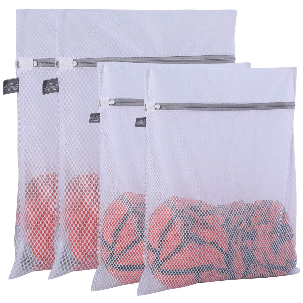 Mesh Laundry Bags, Washing Machine Wash Bag, Honeycomb Mesh Laundry Bag for Washing Delicates, Pack of 4 2XL(50x60cm)2L(40X50cm) Grey Zip