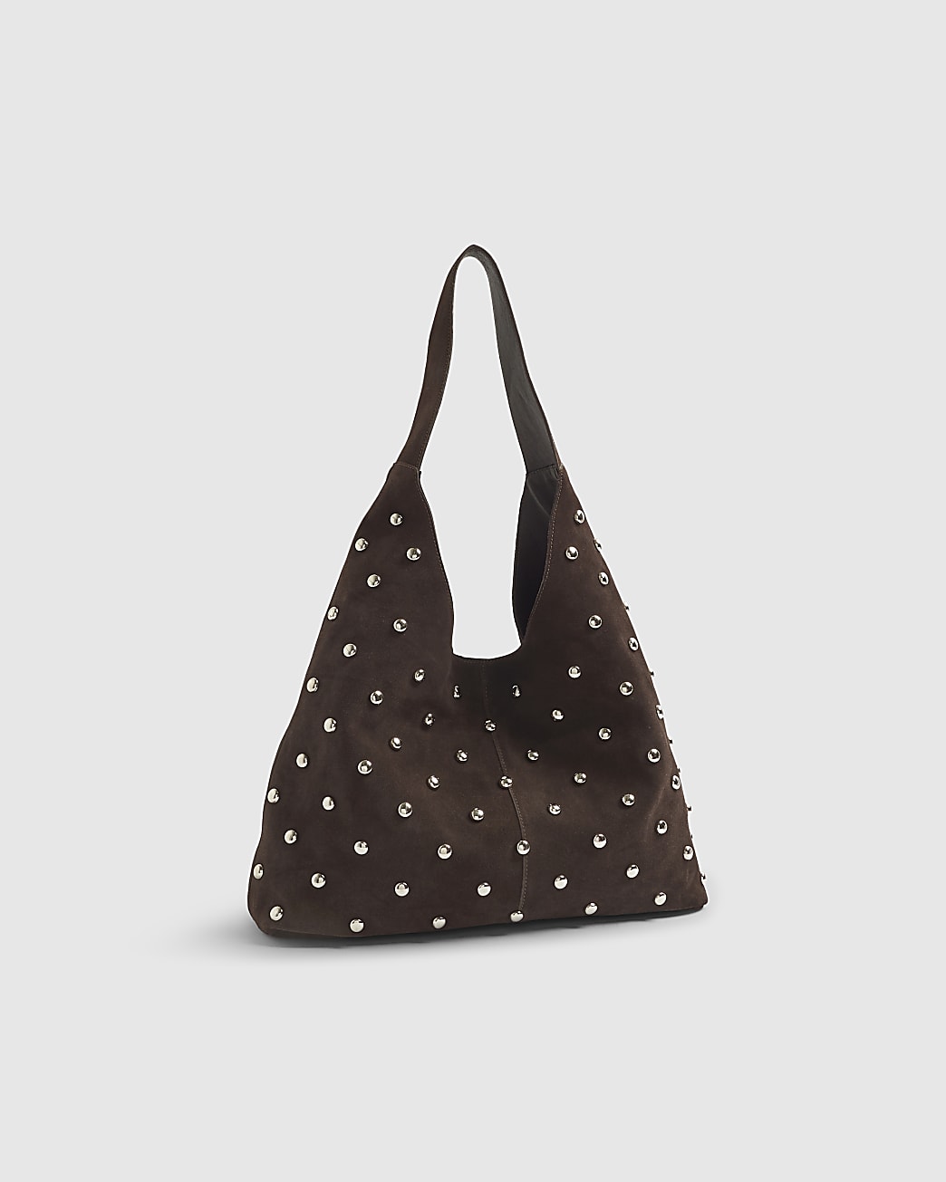 River Island Womens Slouch Shoulder Bag Brown Suede Studded Leather - One Size