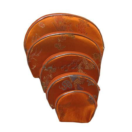 Portable Silk Brocade 5 size Sets Bag Jewelry Storage Bags for Travel Zipper Pouch Coin Purses Lightweight Cosmetic Makeup Packaging Bags (orange (5 Set)Pattern Random)