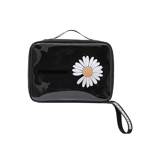 Travel Toiletry Bag Daisy Patterned Storage Bag Cosmetic Bags Portable Pouch Open Make up Organizer with Handle Gift, black, L