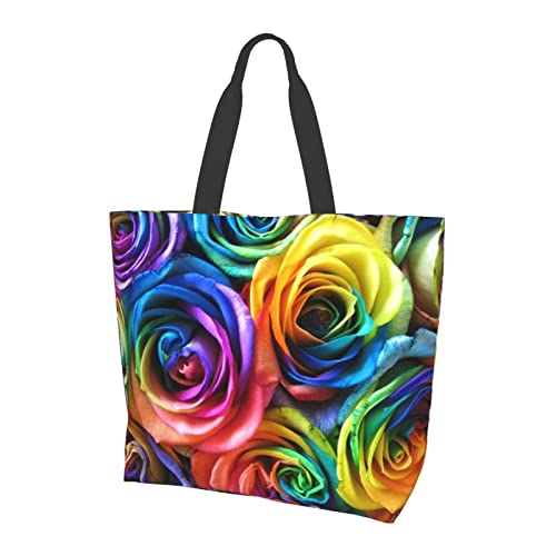 Lawenp Rainbow Rose Shoulder Bag For Women, Reusable Tote Bag Large Eco Bag Shopping Bag Storage Bag Folding Bags Beach Bag