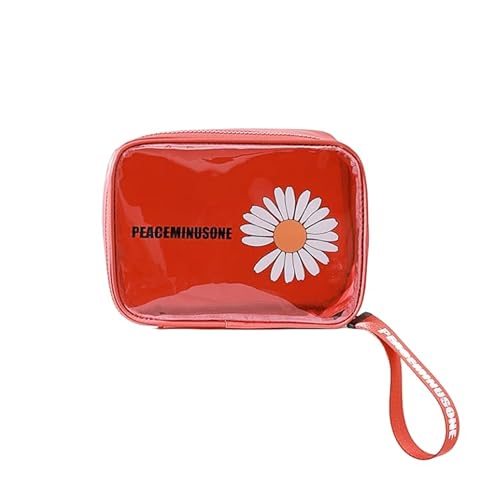 Travel Toiletry Bag Daisy Patterned Storage Bag Cosmetic Bags Portable Pouch Open Make up Organizer with Handle Gift, red, Small