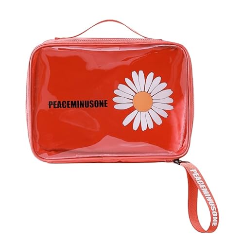 Travel Toiletry Bag Daisy Patterned Storage Bag Cosmetic Bags Portable Pouch Open Make up Organizer with Handle Gift, red, L
