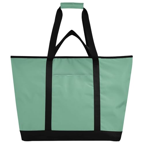 Insulated Cooler Bag with Zipper, Keep Food Hot or Cold Foldable Leakproof Cooler Bag with Handles for Beach, Travel, Picnic, Sage Green, Plain, Multi-Colour, 47cm (Length