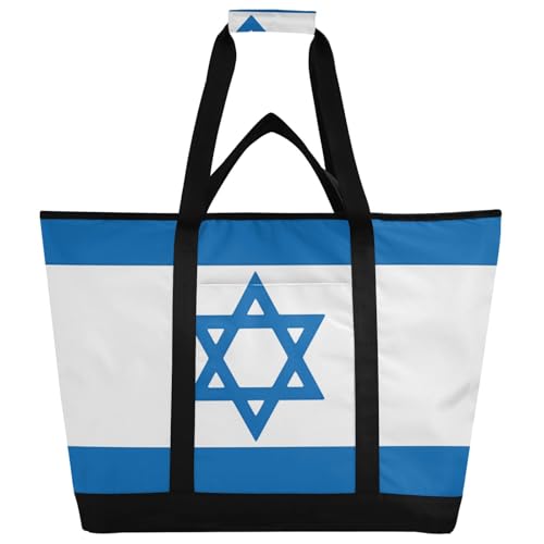 Insulated Cooler Bag with Zipper, Keep Food Hot or Cold, Foldable Reusable and Leak Proof Shopping Bag for Shopping, Travel, Beach, Camping, Israeli Flag