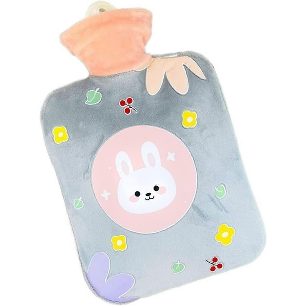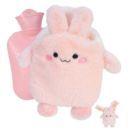 Flintronic Hot Water Bottle, 400ml Warm Water Bag with Plush Cover, Hot Water Bottle Cosy Fluffy Soft Plush Cute Pattern, Hot Water Bag for Neck, Shoulder Pain and Hand Feet Warmer (Rabbit)