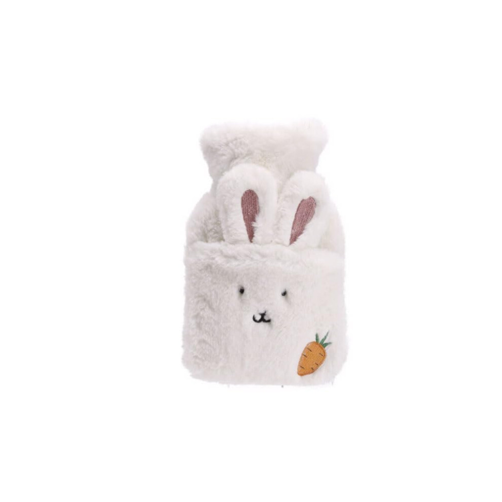 500ml/17.6oz water-filled hot water bottle cute plush warm water bag with cover portable hot water bag with hand pocket White