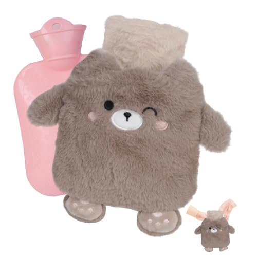 Flintronic Hot Water Bottle, 400ml Warm Water Bag with Plush Cover, Hot Water Bottle Cosy Fluffy Soft Plush Cute Pattern, Hot Water Bag for Neck, Shoulder Pain and Hand Feet Warmer (Bear)