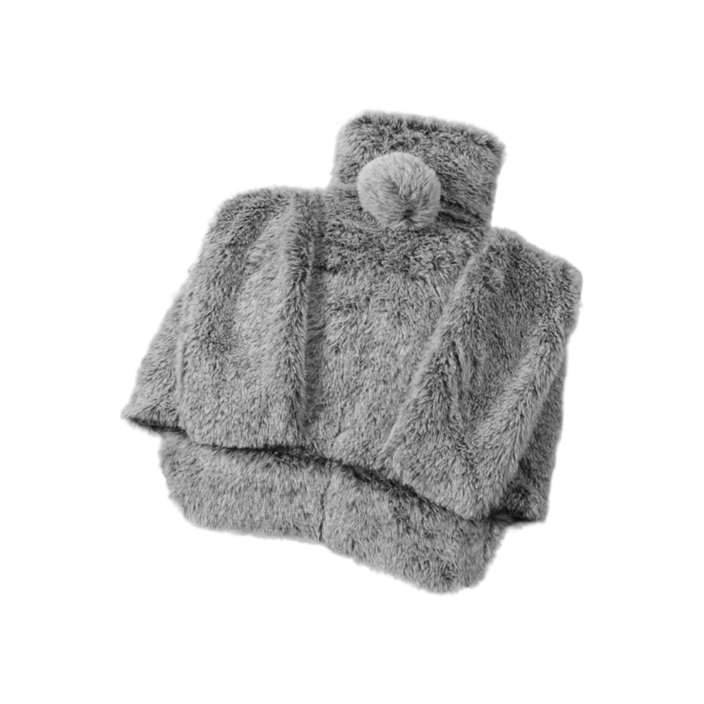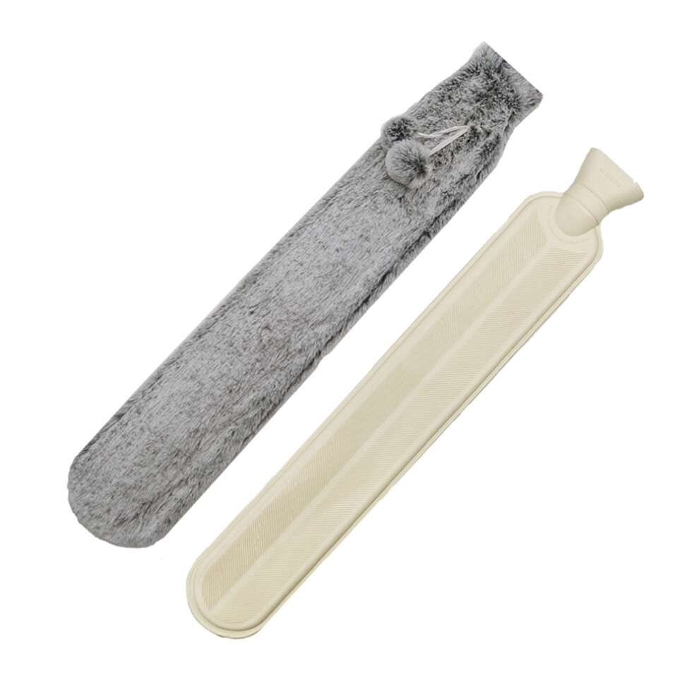 Hot Water Bag Long Fully Body Hot Water Bottle with Cover, Hot Water Bag for Pain Relief, Faux Fur Warm Water Bottle Grey