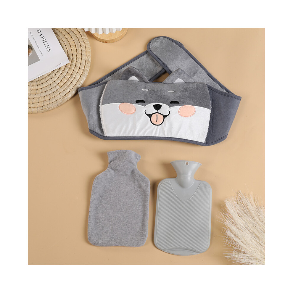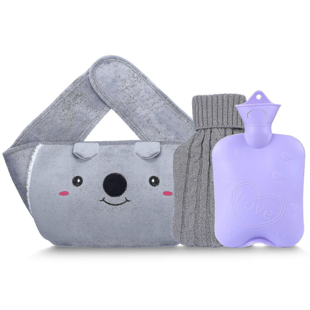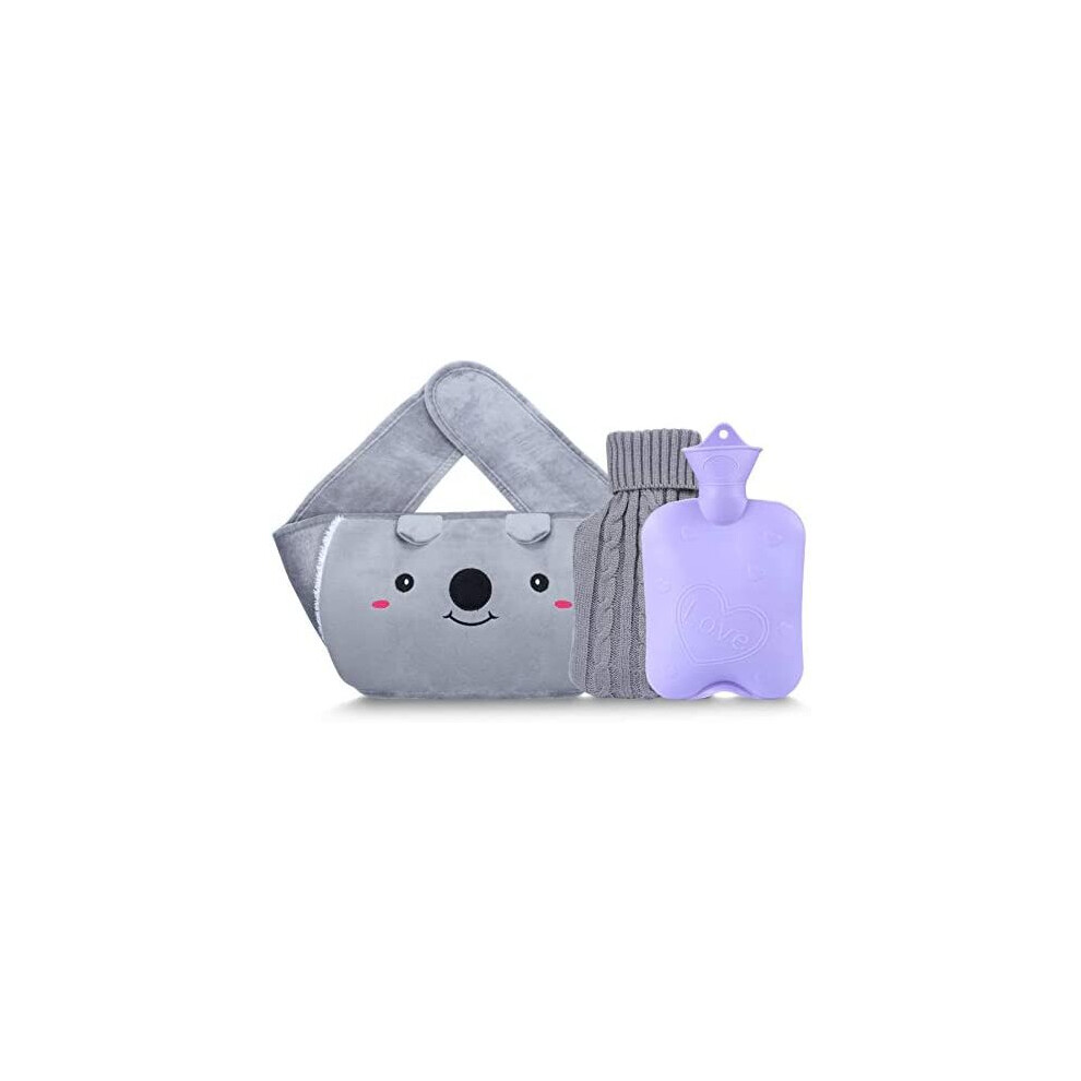Hot Water Bottle with 2 Pack Waist Cover, Warm Water Bag Rubber Winter Hot Water Pouch with Soft Plush Hand Waist Warmer Cover Hot Water Bag (Grey