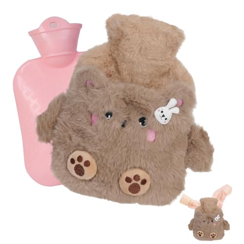 Flintronic Hot Water Bottle, 400ml Warm Water Bag with Plush Cover, Hot Water Bottle Cosy Fluffy Soft Plush Cute Pattern, Hot Water Bag for Neck, Shoulder Pain and Hand Feet Warmer (Dark Brown Bear)