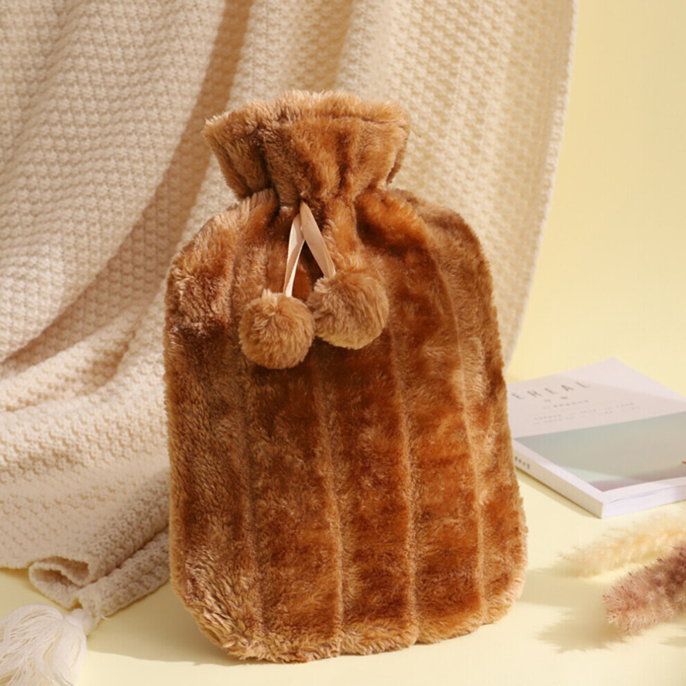 (Light brown, 2000ml) Pxcl Water Heater Bag Filled With Water Hot Water Bag Thickened Plush Cloth Cover Hand Warmer