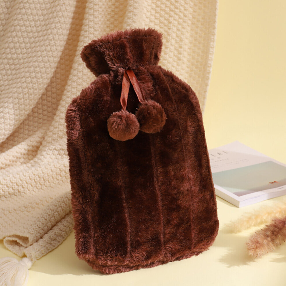 (Dark brown, 2000ml) Pxcl Water Heater Bag Filled With Water Hot Water Bag Thickened Plush Cloth Cover Hand Warmer