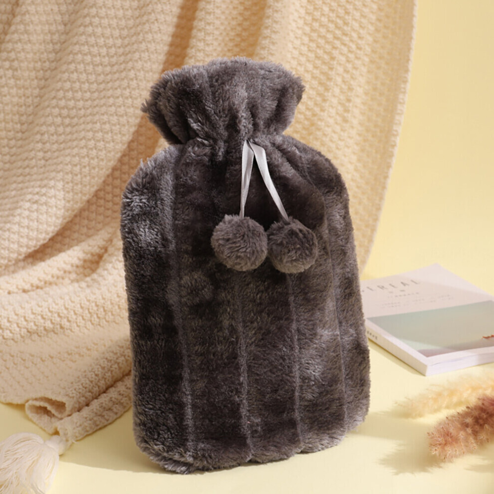 (Dark gray, 2000ml) Pxcl Water Heater Bag Filled With Water Hot Water Bag Thickened Plush Cloth Cover Hand Warmer