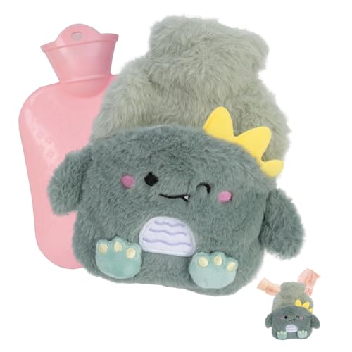 Flintronic Hot Water Bottle, 400ml Warm Water Bag with Plush Cover, Hot Water Bottle Cosy Fluffy Soft Plush Cute Pattern, Hot Water Bag for Neck, Shoulder Pain and Hand Feet Warmer (Dinosaur)